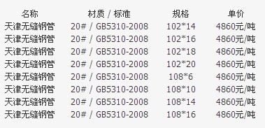 2月10日(rì)天津無縫鋼管價格行情(qíng)